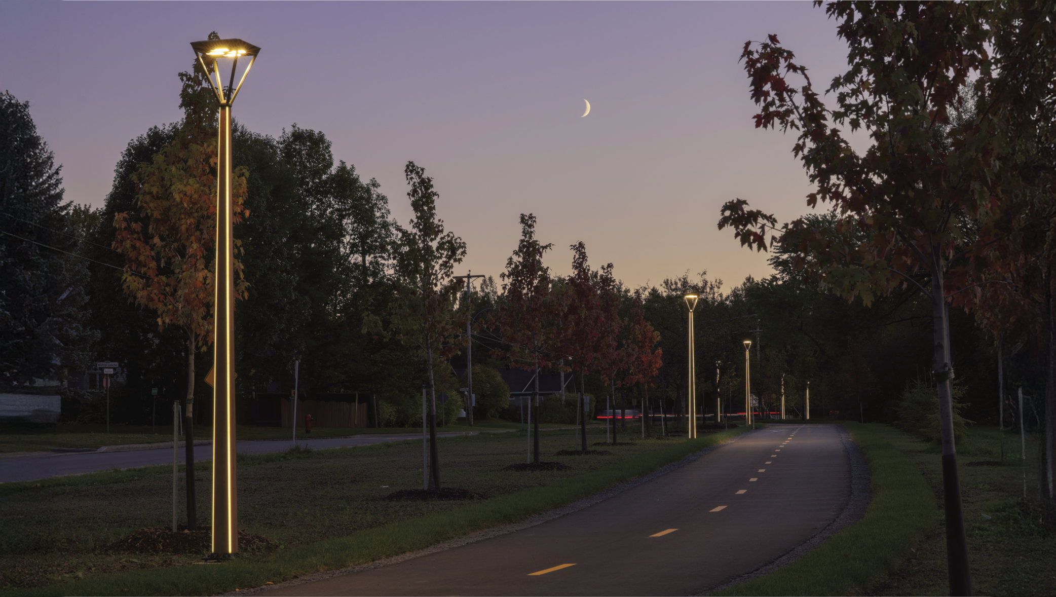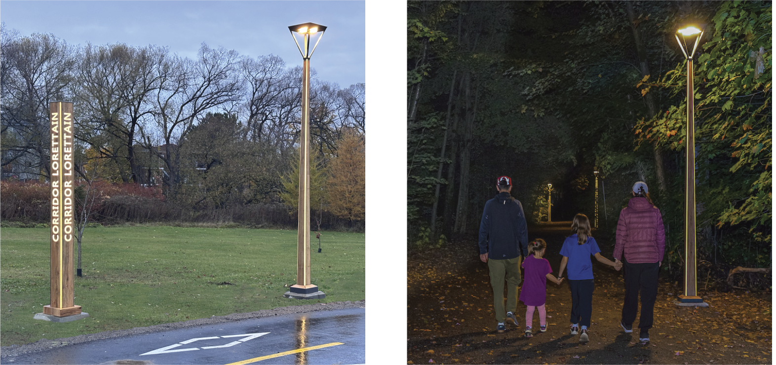 Grâce à cet éclairage architectural sur mesure, le Corridor Lorettain devient un espace sécuritaire et inspirant dédié aux déplacements actifs.